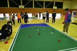 最後に、障害者スポーツとして有名なボッチャを体験しました。思っていた以上に上手くいかず、奥の深さを知ることができました。