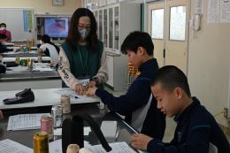 2学年では総合学習の一環として、福祉学習を行いました。木更津市社会福祉協議会の皆さんにご指導を仰ぎ、様々な体験をしました。