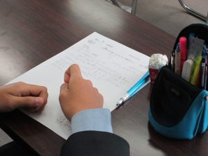 先生の体験に基づいた、そして惹きつける語り口に、生徒たちは感想を記録しながら聞き入っていました。