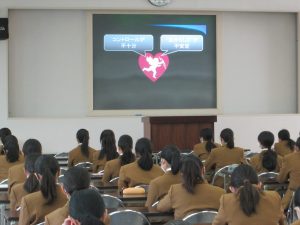 2・3年生は、川島助産院の川島広江先生をお招きして高等部大講義室で保健講話をしていただきました。