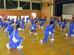 1年生は体育館で「集団行動」の練習が開始されました。
