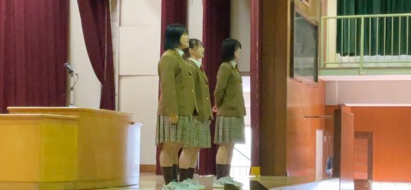 24日(火)の修了式では、部長が校訓唱和の代表として全校生徒の前に立ちました。